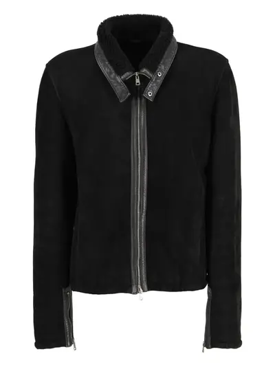 circa 1990s black leather shearling collar front zip fastening two front pockets zip cuffs