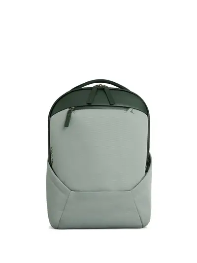 green leather trim two zip compartments padded back panels zip pocket adjustable straps