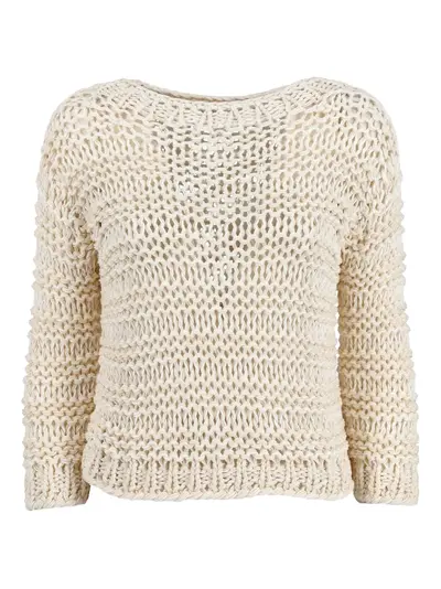 beige cotton blend knitted construction crew neck long sleeves Condition: EXCELLENT. This previously owned item is in near-perfect condition with no signs of damage or use.