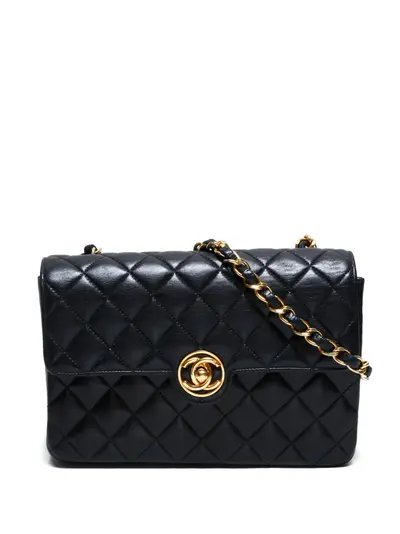 1989-1991 black 1676730 quilted chain strap twist-lock fastening gold-tone hardware internal slip pocket Condition: GOOD. This previously owned and used item is in good condition with minimal signs of use. This may include fading of material or plating and scratches.