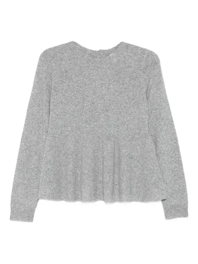 grey wool blend knitted construction round neck long sleeves peplum hem