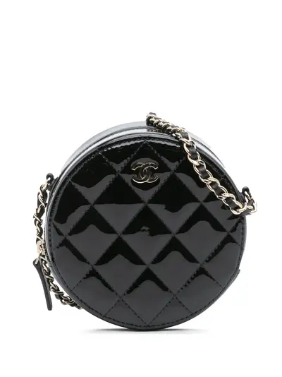 quilted patent leather body woven chain strap top zip closure black Serial Number: 29205175 Inclusions: authenticity card. Condition: EXCELLENT. This previously owned item is in near-perfect condition with no signs of damage or use. Declared Damages: Exterior Side Feature(s) Minor Loose Stitching. Please refer to the photos on this product page for a detailed view of the item, including any damages declared.