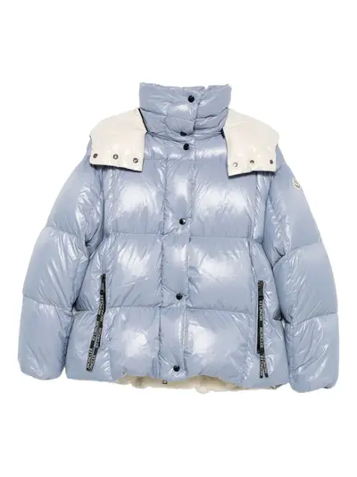 light blue logo patch press stud fastening high neck classic hood zip detailing