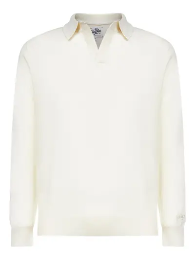 ivory ribbed polo collar v-neck long sleeves embroidery at wrist ribbed cuffs ribbed bottom band