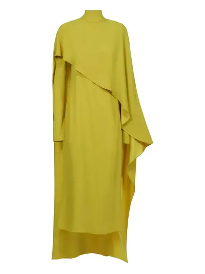 chartreuse high neck long sleeves draped detail midi length rear button fastening