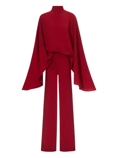 ruby cape effect high neck long sleeves wide leg concealed back-button fastening