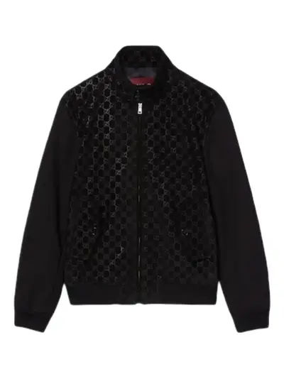 black suede texture GG pattern zip fastening ribbed cuffs stand collar