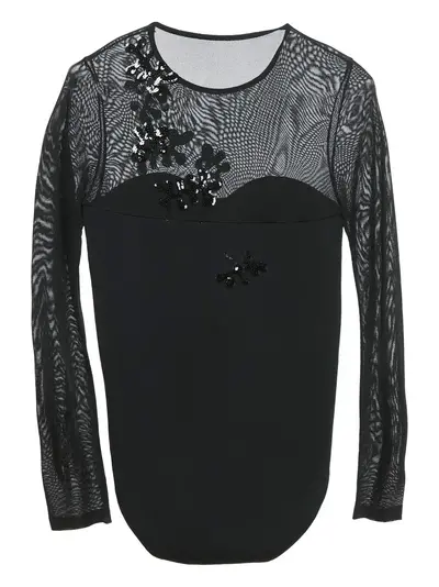black sequin floral embellishment long sleeves round neck semi-sheer construction