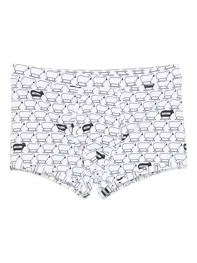 white sheep print logo detailing elasticated waistband cotton Be mindful to try on swimwear over your own garments.