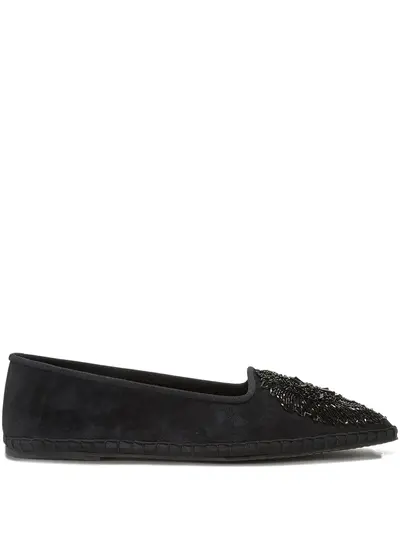 black suede upper bead embellishment flat sole slip-on style