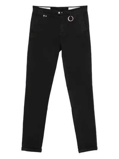 black front button and zip fastening belt loops ring detail side slit pockets