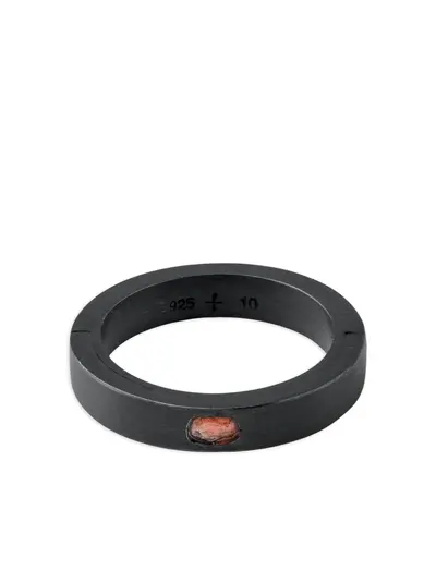black sterling silver oxidised finish faceted slab sapphire embellishment totalling 0.1 carats Normal everyday use and external agents may reduce the lustre of gemstones and gold surfaces. To maintain, use specific, non-abrasive products specially meant for cleaning jewellery.
