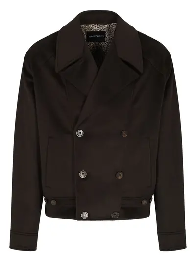 brown lapel collar side pockets long sleeves buttoned cuffs