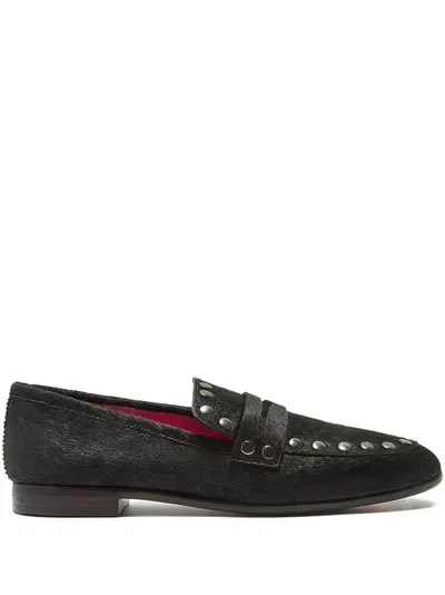 black horsehair upper metal-stud embellishment penny-strap detail pointed toe flat sole