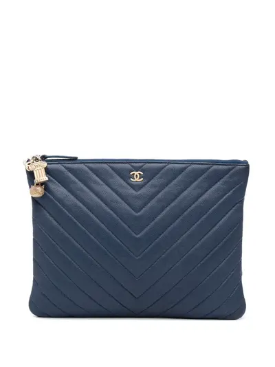 chevron leather body top zip closure exterior back slip pocket interior zip pocket blue Serial Number: 25215945 This item has no inclusions. Condition: GOOD. This previously owned and used item is in good condition with minimal signs of use. This may include fading of material or plating and scratches. Declared Damages: Exterior Bottom Feature(s) Moderate Wear. Please refer to the photos on this product page for a detailed view of the item, including any damages declared.