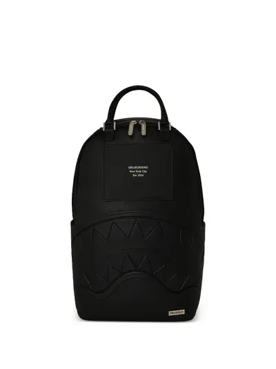 black embossed shark motif mesh panelling adjustable shoulder straps single top handle all-around zip fastening