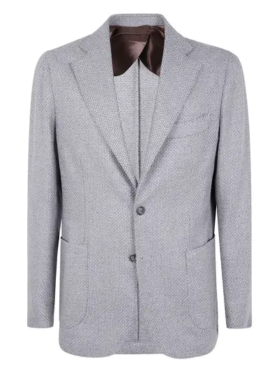 grey textured weave button fastening notched lapels front patch pockets long sleeves