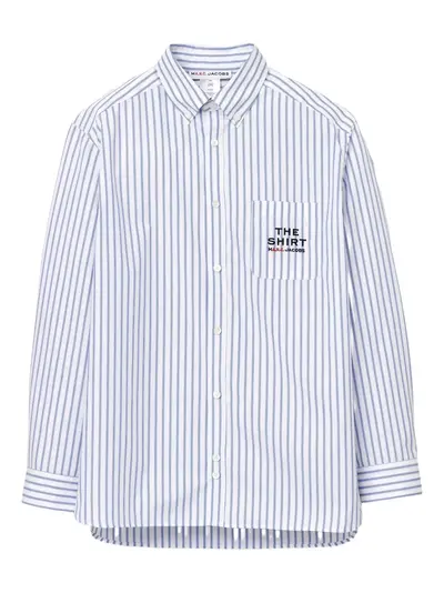 blue vertical stripes embroidered detail button fastening long sleeves chest pocket