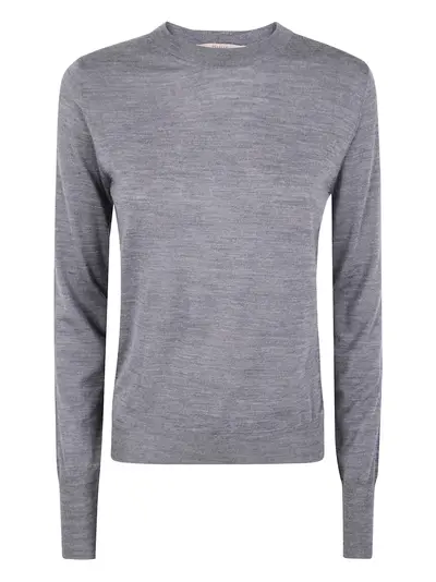 grey round neck long sleeves fine knit ribbed hem ribbed cuffs