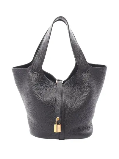 Clemence leather body in Noir color flat leather handles open top with a pull through strap and padlock closure black Inclusions: padlock, key. Condition: UNWORN. This item is previously owned but remains unworn and in its original condition. However, it does not come with its original tags. Due to the exclusivity of this item and its limited availability, processing and delivery might take longer than usual. Please refer to the photos on this product page for a detailed view of the item, including any damages declared.