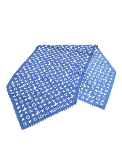 print on 100% silk blue This item has no inclusions. Condition: EXCELLENT. This previously owned item is in near-perfect condition with no signs of damage or use. Due to the exclusivity of this item and its limited availability, processing and delivery might take longer than usual. Please refer to the photos on this product page for a detailed view of the item, including any damages declared.