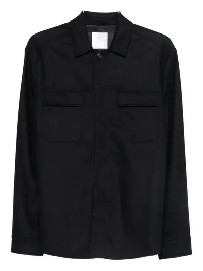 navy blue chest pockets button fastening long sleeves buttoned cuffs straight hem