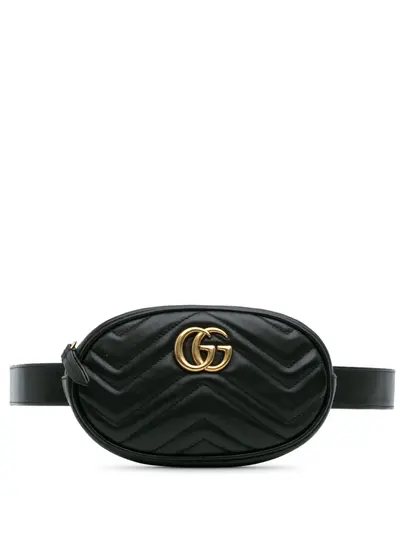 This belt bag features a quilted leather body, an adjustable flat leather waist strap, a top zip closure, and an interior slip pocket. Black. Serial Number: 476434 493075. Inclusions: shoulder strap, dust bag, box. Condition: EXCELLENT. This previously owned item is in near-perfect condition with no signs of damage or use. Please refer to the photos on this product page for a detailed view of the item, including any damages declared.