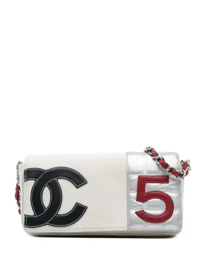canvas body with quilted leather trim leather woven chain strap front flap interior zip pocket white Serial Number: 7475295 This item has no inclusions. Condition: GOOD. This previously owned and used item is in good condition with minimal signs of use. This may include fading of material or plating and scratches. Please refer to the photos on this product page for a detailed view of the item, including any damages declared.