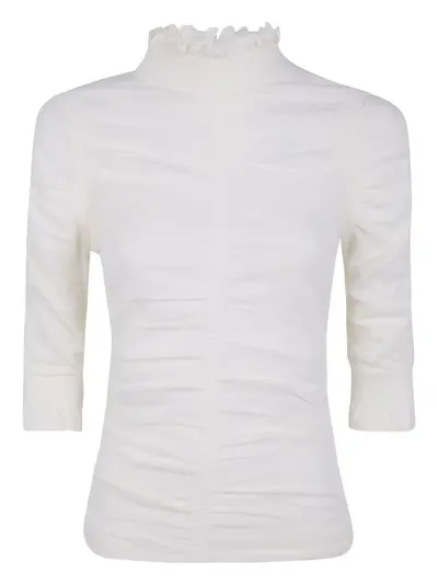 snow ruffled high neck three-quarter sleeves gathered detail metal logo detail