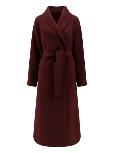 bordeaux red wool shawl lapels detachable belt long sleeves wrap design