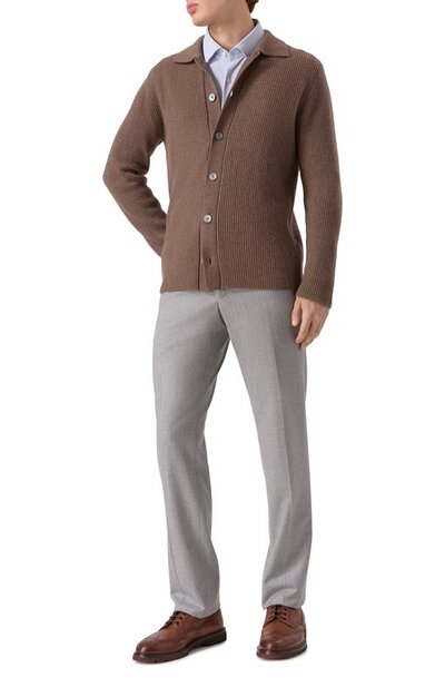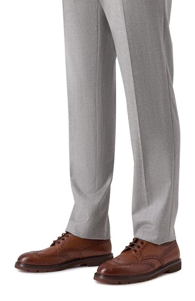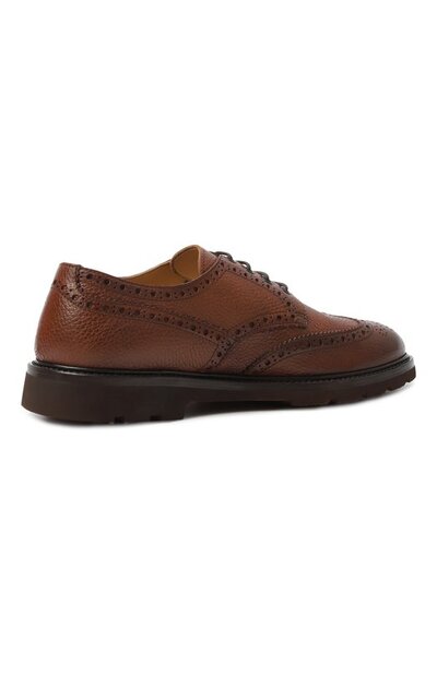 Дерби George с брогированием и патиной выполнили из зернистой кожи. Модель с миндалевидным мысом поставили на литую выступающую подошву с глубоким протектором.
