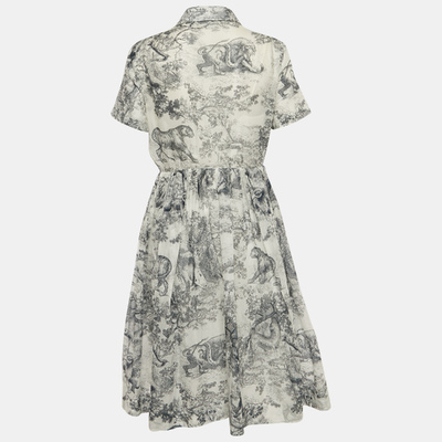 Christian Dior White Toile De Jouy Print Cotton Midi Shirt Dress L 1221750 (белый, lpn31025350)