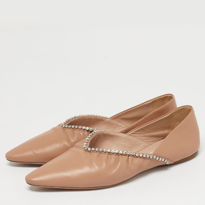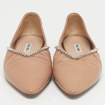Miu Miu Beige Leather Crystal Embellished Ballet Flats Size 38 1222894 (бежевый, lpn31025358)
