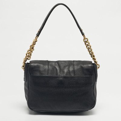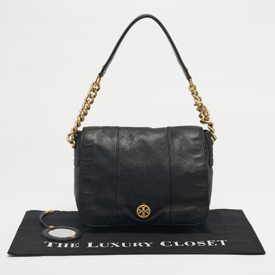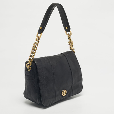 Made from soft black leather, this Tory Burch shoulder bag is defined by its flap front and the brand’s signature logo medallion. The gold tone chain with a leather shoulder guard adds just the right amount of comfort, making it an easy companion whether paired with denim in the day or a dress at night.
