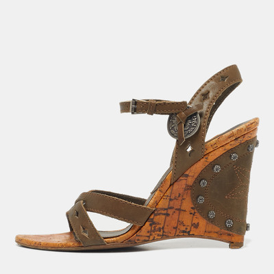 Dior Two Tone Leather Gaucho Wedge Ankle Strap Sandals Size 37 1223760 (коричневый, lpn31025418)
