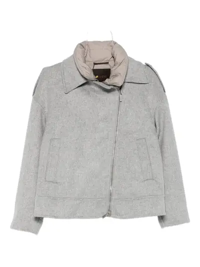 grey wool zip fastening welt pockets shoulder tabs padded collar