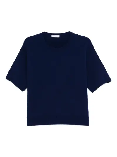 blue round neck short sleeves fine knit