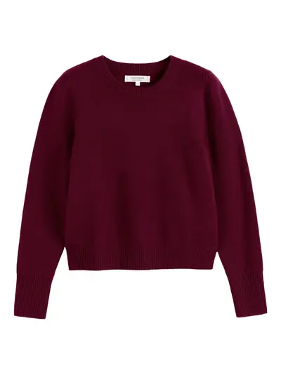 claret red ribbed hem and cuffs round neck long sleeves fine knit