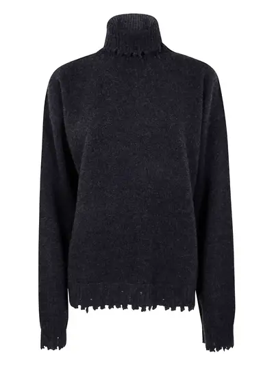 grey roll neck ruffled trim long sleeves straight hem knitted construction