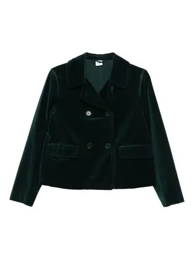 dark green double-breasted notched lapels front button fastening front flap pockets long sleeves