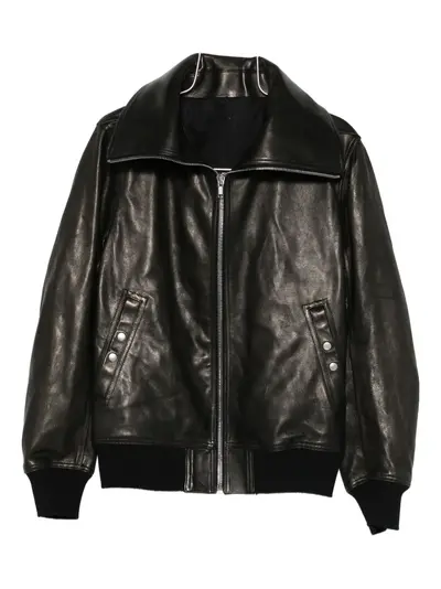 black zip fastening buttoned detailing wide collar ribbed cuffs welt pockets