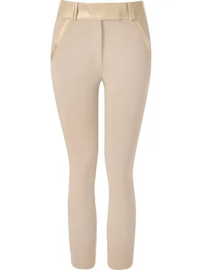 Nude cropped trousers from Gloria Coelho featuring a mid rise, a waistband with belt loops, a concealed front fastening, rear welt pockets and leather trims.