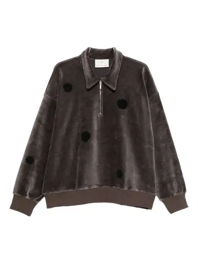 brown flower appliqué half zip fastening long sleeves ribbed cuffs and hem