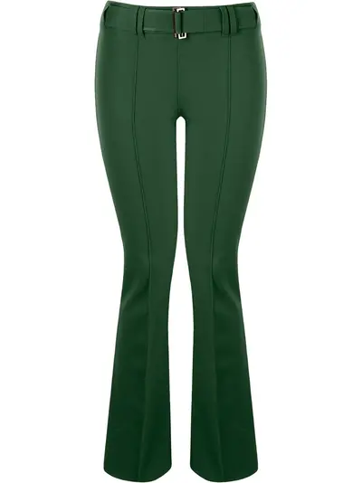 Green flared trousers from Gloria Coelho featuring belt loops, a buckle fastening and pleated details.