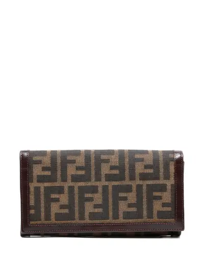1980-1990 brown zucca pattern foldover top with press-stud fastening rectangle shape internal card slots Condition: GOOD. This previously owned and used item is in good condition with minimal signs of use. This may include fading of material or plating and scratches.