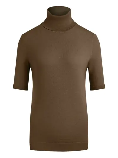 brown merino wool short sleeves turtleneck ribbed-knit edge