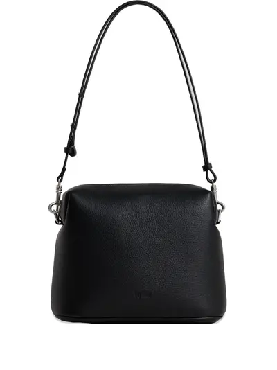 black grained texture zip fastening top handle internal slip pockets silver-tone hardware