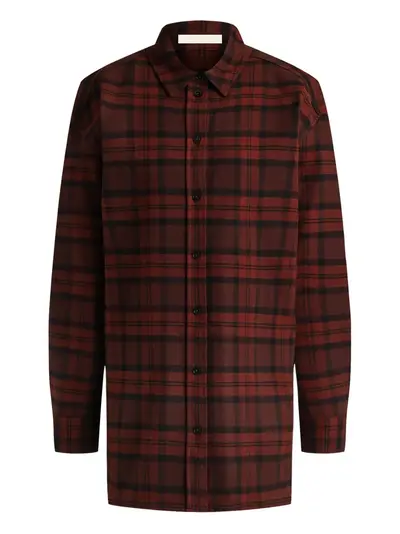 brown checked pattern button fastening long sleeves buttoned cuffs classic collar
