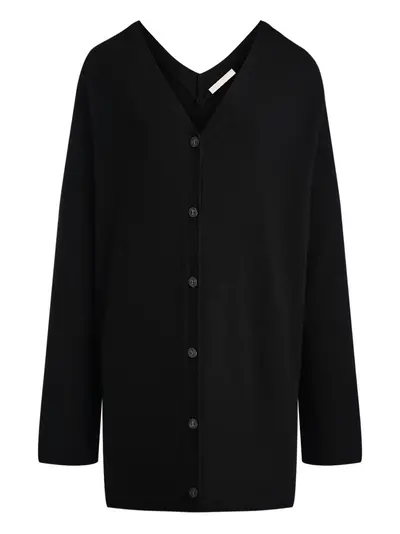 black V-neck button fastening long sleeves fine knit V-back