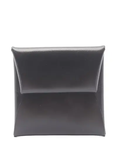 black calf leather silver-tone hardware foldover top press-stud fastening internal logo stamp Condition: GOOD. This previously owned and used item is in good condition with minimal signs of use. This may include fading of material or plating and scratches.